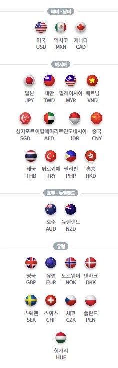 | 무료 환전 가능 국가 | |