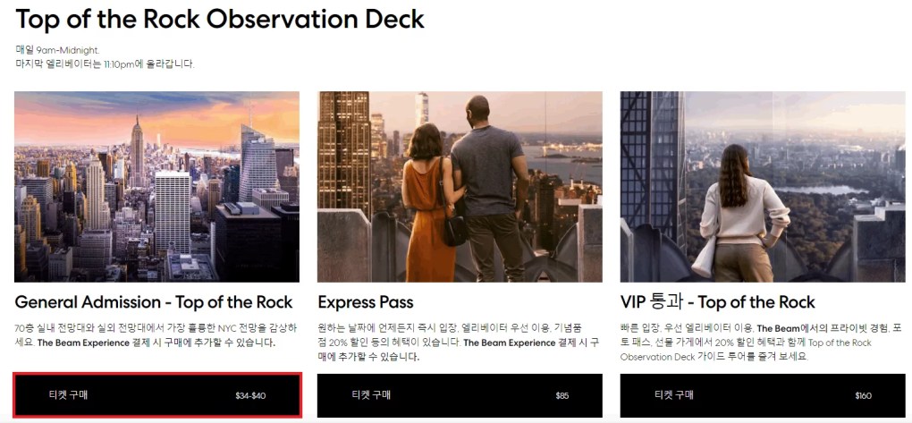 뉴욕 록펠러센터 탑오브더락 전망대 티켓 가격