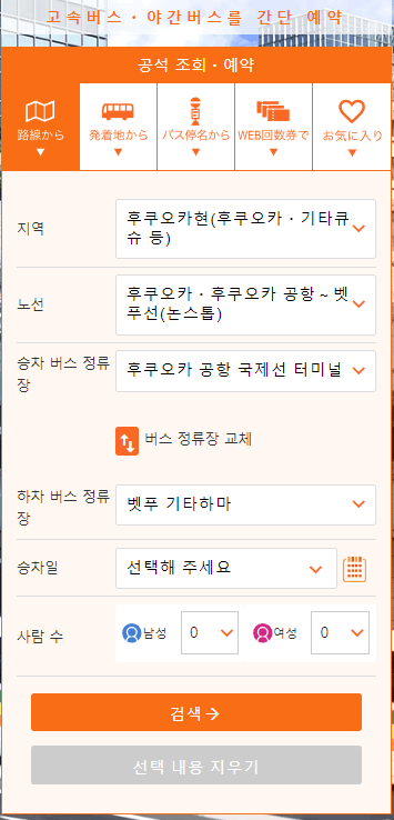 산큐패스가 없고 산큐패스에 관심이 없으신 분은 공식홈페이지를 통해서도 버스 예약이 가능합니다.