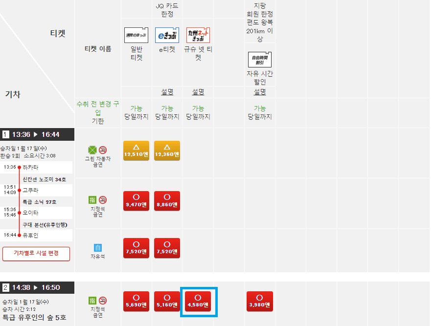 후쿠오카에서 유후인 기차로 가는법(유후인노모리, 특급유후)