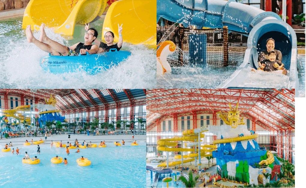 베트남에서 가장 긴 실내 슬라이드 놀이기구를 가지고 있으며 베트남에서 두 번째로 큰 파도풀 뿐만 아니라 일년 내내 30도의 따뜻한 물에서 물놀이가 가능합니다.