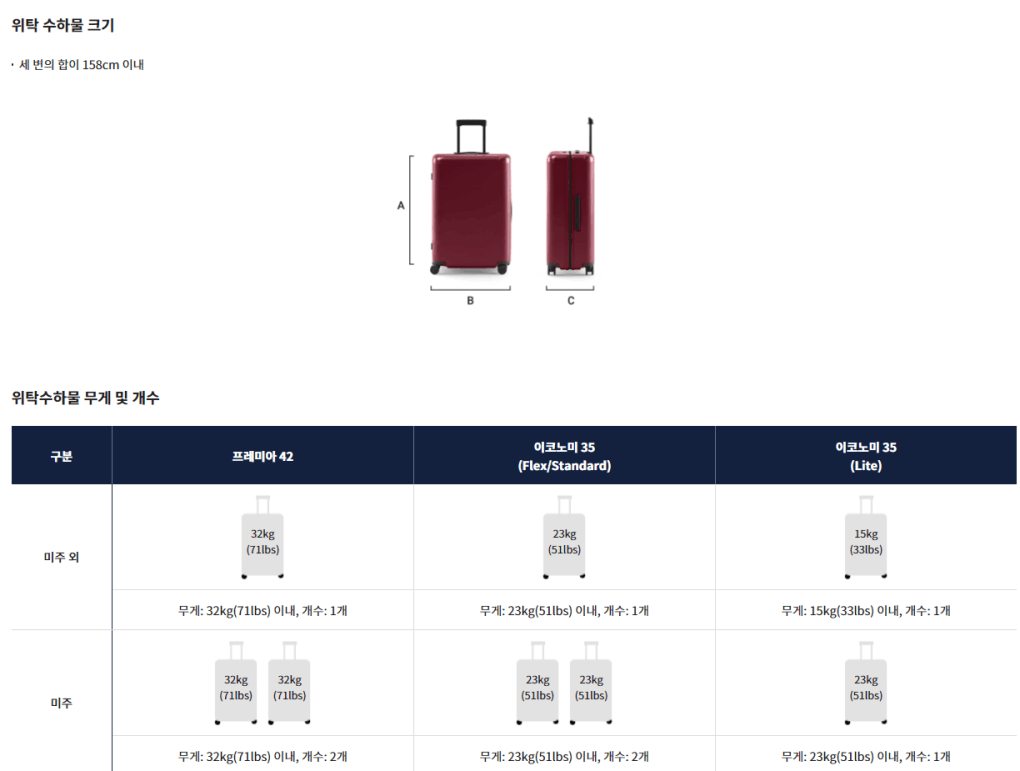 항공기 출발 48시간 전에 사전에 수하물을 미리 구매하면 개수 초과 기준, 미주 기준 4만원까지 절약이 가능합니다.